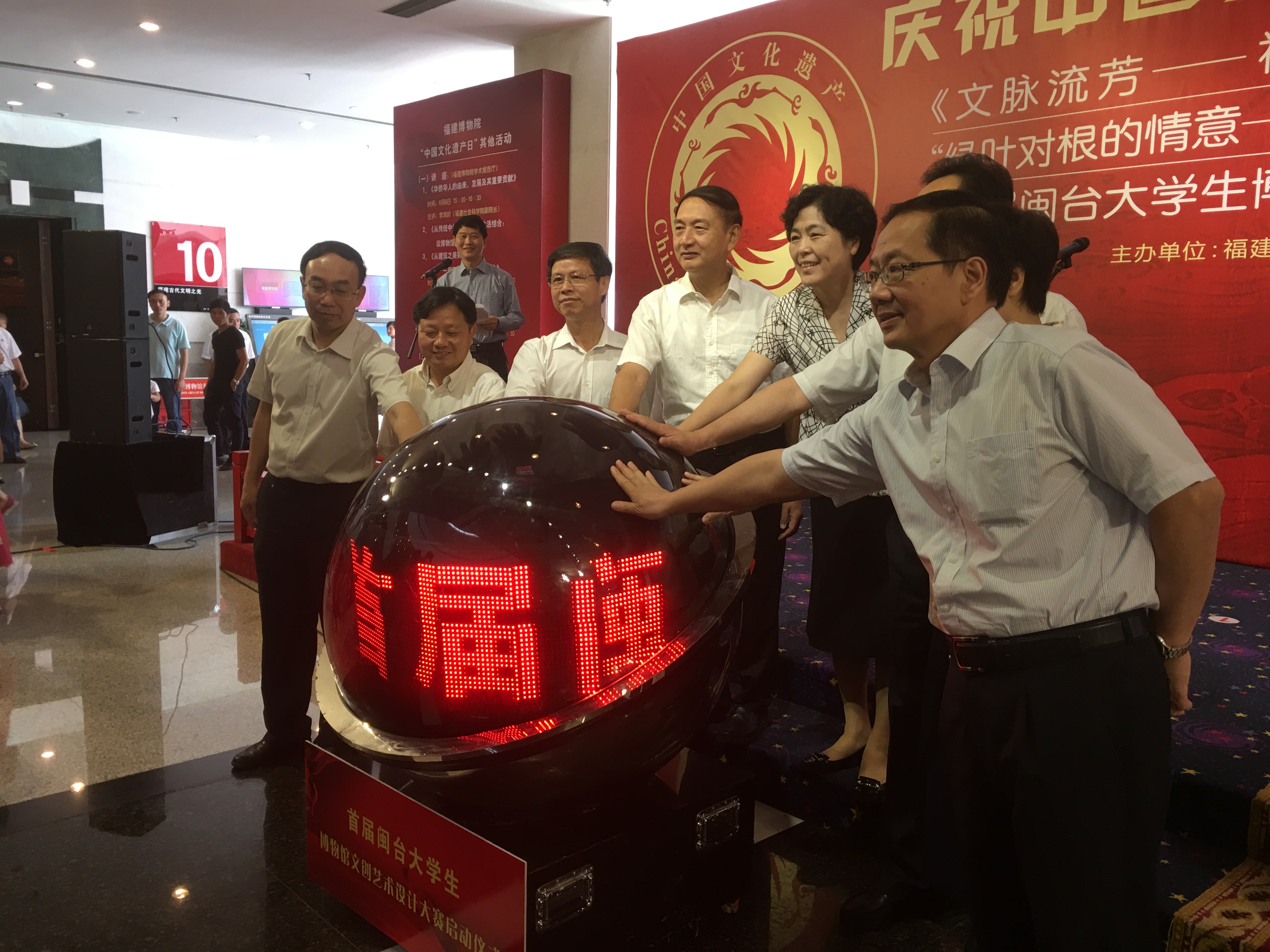 6月11日上午,由省政协和文化厅主办的中国第十一届文化遗产日主题系列活动在福建省博物院隆重举行,副省长李红、省政协副主席陈向先出席并讲话。校长郑建岚应邀出席开幕仪式,并一起为首届闽台大学生博物馆文创艺术设计大赛活动启动水晶球。设计与创意学院100多名师生参加了本活动。