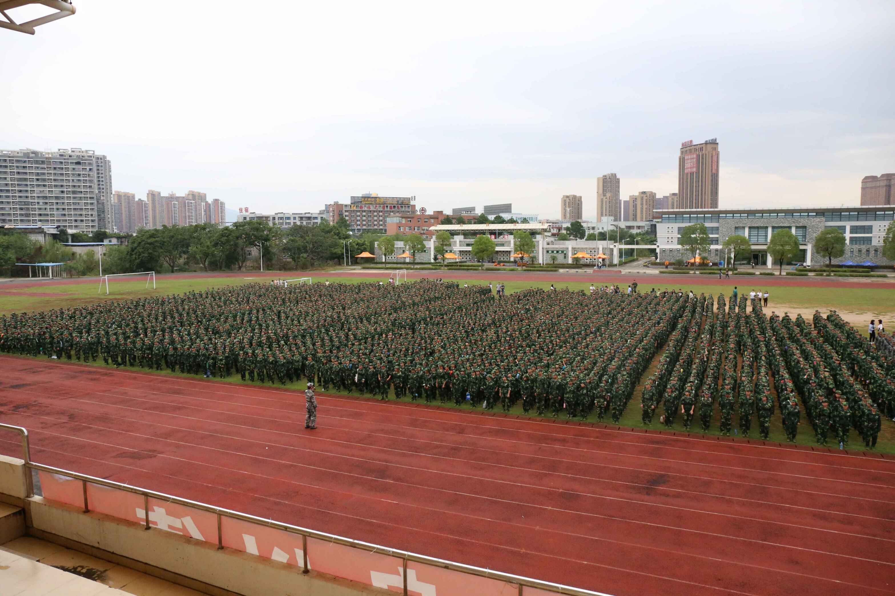10月9日,我校3500余名2016级新生身着迷彩服,排着整齐的队伍,英姿飒爽列队在校田径场参加军训开训动员大会。校党委副书记王长勇、副校长程灵出席动员大会。承训部队全体教官、校军训领导小组成员及新生辅导员参加了大会。