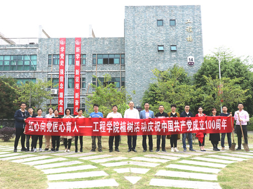 4月13日下午,工程学院党委开展“红心向党、匠心育人”师生植树活动。校党委常委、纪委书记、监察专员练欣与工程学院班子成员和师生代表一道,在教学区理工楼群中心花园种下20余株广玉兰、丁香花和紫荆花树苗,为美丽校园植绿添绿,向中国共产党成立100周年献礼。