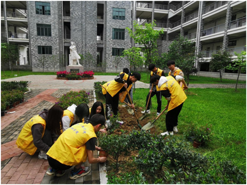 4月11日上午,金融学院组织30余名学生党员在金融楼中庭碧玲园开展“红色党建•绿色发展”劳动教育,栽植紫牡丹160株,并整理草坪卫生,以实际行动美化校园,迎接学校第二次党代表大会胜利召开,庆祝中国共产党成立100周年。