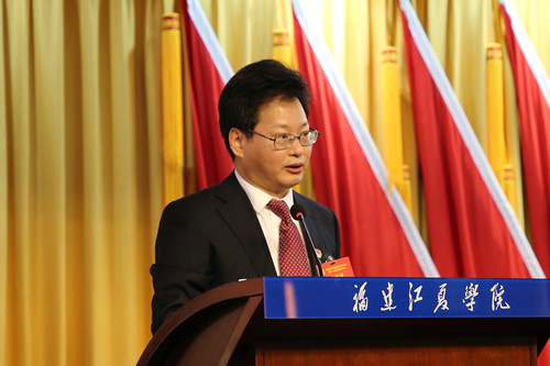 省委教育工委副书记、省教育厅党组成员、一级巡视员王建南代表省委教育工委对福建江夏学院第二次党代会的召开表示热烈祝贺,肯定了福建江夏学院第一次党代会以来的发展成就,并提出四点希望:一要科学谋划学校未来发展蓝图,在推动学校高质量发展上下功夫;二要深化“三全育人”综合改革,在落实立德树人根本任务上下功夫;三要深入学习贯彻《中国共产党普通高等学校基层组织工作条例》,在推动学校基层党组织全面进步全面过硬上下功夫;四要认真履行党委主体责任,在抢抓战略机遇期、增强发展新优势上下功夫。他希望福建江夏学院新一届党委领导班子团结带领全校共产党员和广大师生员工,进一步解放思想、勠力同心、真抓实干、锐意进取,朝着建设区域一流应用型本科大学的目标阔步前进,为全方位推进高质量发展超越、谱写全面建设社会主义现代化国家福建篇章作出新的更大贡献。