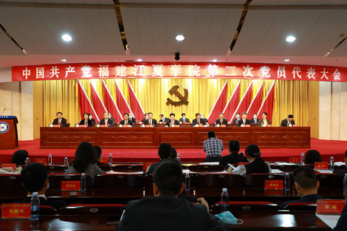 5月8日上午,中国共产党福建江夏学院第二次党员代表大会在图书馆学术报告厅隆重开幕。正式代表、特邀嘉宾、列席人员参加大会。省委教育工委副书记、省教育厅党组成员、一级巡视员王建南参加大会并讲话。省委组织部组织一处二级调研员车延萍,省委教育工委组织处处长、一级调研员陈洪尧到会指导。会议由校党委书记郑建岚主持。