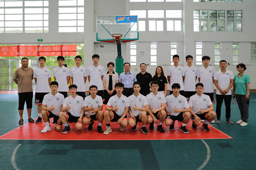 5月17日下午,校长陈国龙、副校长程灵一行来到风雨球馆,看望正在备战第二十三届中国大学生篮球联赛(阳光组)南区决赛的校男子篮球队队员。