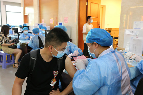 5月16日至19日,我校在图书馆二楼设置新冠疫苗接种点,组织师生员工集中接种第一针疫苗。