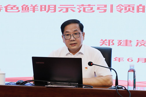 6月7日下午,校党委书记郑建岚为学校处科级干部党史学习教育专题培训班作“感悟百年党史 汲取智慧力量 奋力建设特色鲜明示范引领的区域一流应用型本科大学”专题辅导报告。报告会由校党委副书记陈敏辉主持。