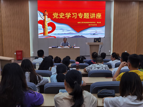 6月7日,离退休教职工党委负责人李永传同志应公共事务学院邀请,在图书馆北报告厅为学生党员、入党积极分子120余人宣讲党史。