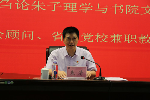 朱清紧扣习近平总书记今年3月在福建考察时强调“要推动中华优秀传统文化创造性转化、创新性发展,以时代精神激活中华优秀传统文化的生命力”等重要指示精神,围绕朱子理学与书院文化对创造、传承和发展中华文明的历史性贡献,朱熹推行书院理学一体化的理论创新内涵实质及其促进书院繁荣、肃正学风和培养“忠孝廉节”仁人志士的实践经验总结,朱子理学与书院文化蕴含的民本、济世思想等进行了深入讲解。
