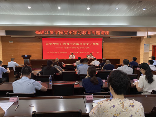 为教育引导广大干部师生进一步深入学习贯彻习近平总书记来闽考察重要讲话精神,贯彻落实省委十届十二次全会精神,6月15日下午,我校邀请省委省直机关工委原常务副书记、省闽学研究会顾问、省高校思政课特聘教授朱清作“在党史学习教育中汲取传统文化精华——刍论朱子理学与书院文化”专题讲座。校领导郑建岚、陈国龙、练欣,处科级干部代表100余人到场聆听。讲座由校党委副书记王长勇主持。