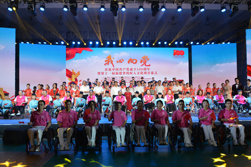 6月19日,庆祝中国共产党成立100周年暨第十一届福建省“残疾人文化周”在省残疾人体育运动管理中心开幕。省委常委周联清、副省长郑建闽等领导莅临现场观看演出。