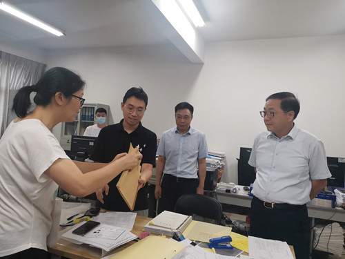 随后,郑建岚一行来到人事处,检查指导学校干部人事档案专审工作,看望慰问现场工作人员,嘱咐大家注意防暑降温,集中精力高质量完成专审任务。