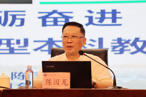 校长陈国龙作了题为“乘势开局 砥砺奋进 铸就未来 加快高质量应用型本科教育体系建设”的主题报告,系统分析了学校事业发展面临的新形势、新局面、新要求,对高质量应用型本科教育的内涵进行了阐释,重点围绕把握形势坚定不移地保持推进高质量发展的战略定力、科学准确地把握高质量应用型本科教育体系的战略设计、乘势而上推动关键领域和重点环节率先突破等三个方面,对加快高质量应用型本科教育体系建设进行了部署。