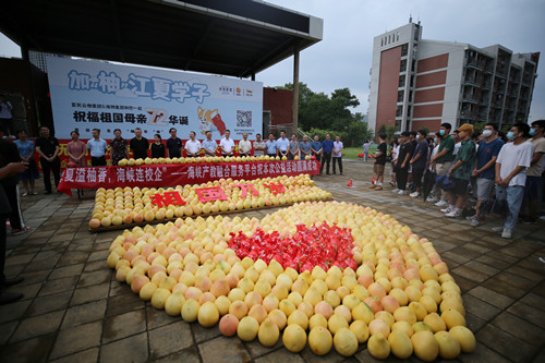 因疫情防控需要,国庆假期全校学生继续留守校园。为了让同学们安心在校过节,9月30日下午,一场飘满柚香的捐赠仪式在福建江夏学院生活区举行。校长陈国龙、校党委副书记王长勇出席仪式。2001级校友、福建富民云咖信息科技有限公司总裁郑旺泉,2006级校友、福建海狮集团有限公司董事长林俊生向母校捐赠近6万斤红柚,慰问师生。