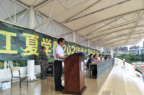 10月11日上午,我校在运动场举行2021级新生军训动员大会。校党委副书记王长勇,副校长程灵,承训部队彭堃上尉出席大会。