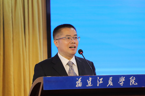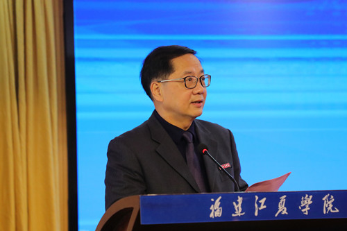 郑建岚致欢迎辞,代表校党委和全体师生员工向参加开幕式的来宾和师生表示欢迎,向大赛主办单位等各级政府部门,各兄弟院校和社会各界长期以来对学校发展给予的重视指导、支持帮助表示感谢。他介绍了学校本科办学以来在应用型转型发展以及推动闽台合作办学方面所取得的成就,表示学校将以本次大赛为契机,加强两岸高校交流与合作,不断促进职业技能教育与创新创业教育相结合,为国家和福建省经济社会发展培养更多高质量应用型创新人才,希望参赛高校及师生交流竞技,各展风采。