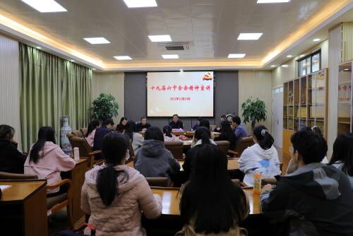 12月24日,校党委书记郑建岚到所联系的金融学院,为师生代表宣讲党的十九届六中全会和省第十一次党代会精神。