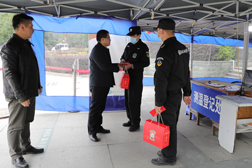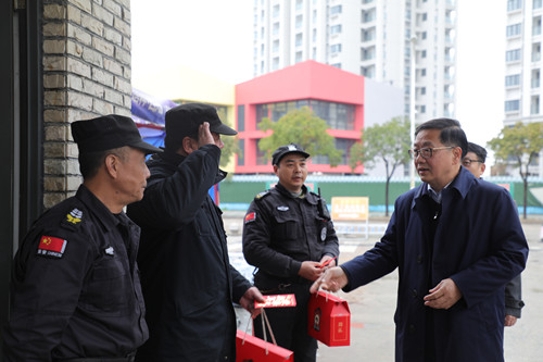 郑建岚对春节假期坚守岗位、辛勤付出的安保人员及留校教师表示诚挚慰问,代表学校师生送上新年祝福和节日问候,感谢他们为平安校园建设和学校事业发展作出的重要贡献。他强调,校园安全稳定工作是学校所有工作顺利开展的基础和保障,当前正值寒假、春节期间,各级各部门一定要时刻紧绷安全这根弦,毫不松懈做好假期校园安全工作,防患于未然。