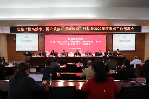 为深入学习贯彻习近平新时代中国特色社会主义思想,贯彻落实党的十九大和十九届历次全会精神,贯彻落实习近平总书记关于教育的重要论述和省委“提高效率、提升效能、提增效益”行动,全面部署学校2022年度重点工作,进一步统一思想,凝心聚力,推进学校高质量发展,3月4日下午,学校召开实施“提高效率、提升效能、提增效益”行动暨2022年重点工作部署会。校领导郑建岚、王长勇、陈敏辉、刘慧宇、林正游、徐杰、林学坚出席会议。会议由校党委副书记、校长凌启淡主持。