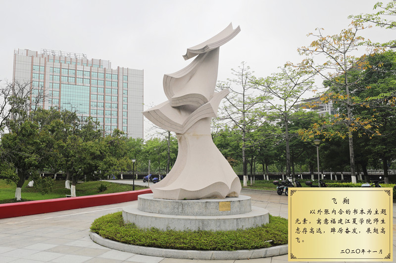 “飞翔”,以外张内合的书本为主题元素,寓意福建江夏学院师生志存高远,踔厉奋发,展翅高飞。