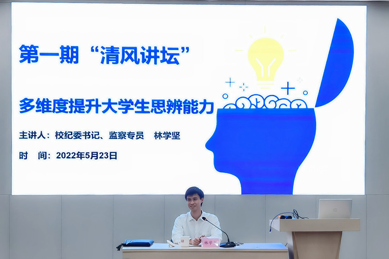 5月23日,校纪委(监察专员办)“清风讲坛”第一期开讲,校纪委书记、监察专员林学坚应邀作“多维度提升大学生思辨能力”专题讲座。