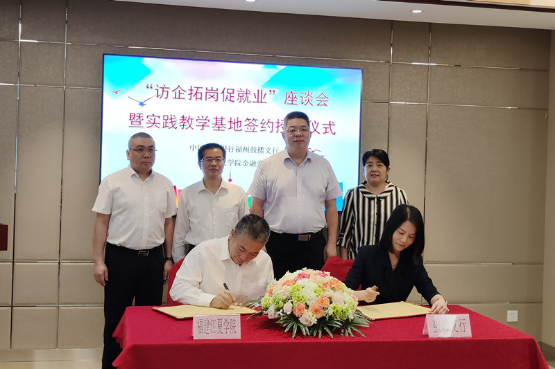 5月27日下午,校长凌启淡一行走访调研中国农业银行福州鼓楼支行,就深化校企合作、供需对接展开座谈,并现场签订实践教学基地共建协议及授牌。农行福建省分行党委委员、副行长,我校校友王城英参加座谈。