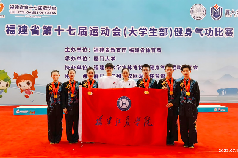 7月18日,为期3天的福建省第十七届运动会(大学生部)健身气功比赛在厦门大学翔安校区落幕。由会计学院谭嘉淇,设计与创意学院余思晗,工程学院沙博炀、董祺松,金融学院黄丽华,外国语学院邓扬玲组成的我校健身气功代表队在公共体育部教师江晓敏的指导下,参加6个项目的角逐,摘得3金2银,并获颁体育道德风尚奖;江晓敏获评“优秀教练员”、黄丽华获评“体育道德风尚奖运动员”。