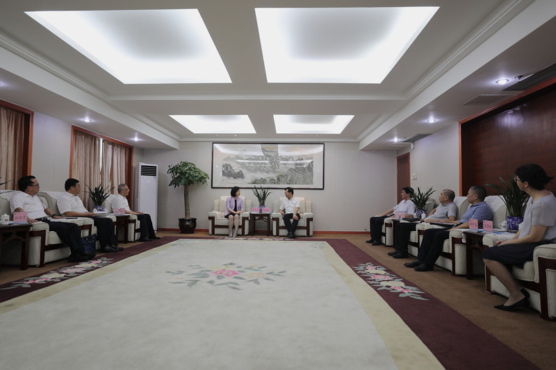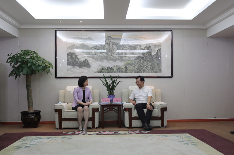 校党委书记宋建晓与建行福建省分行行长黄惠玲(左)一行座谈交流