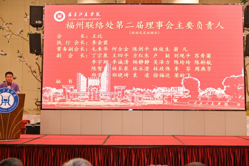 会议还邀请了“纳新校友”代表发表感言,并为福州联络处第二届理事会、监事会成员颁发聘书。厦门、泉州、龙岩、宁德、平潭联络处向福州联络处送上纪念礼品。
