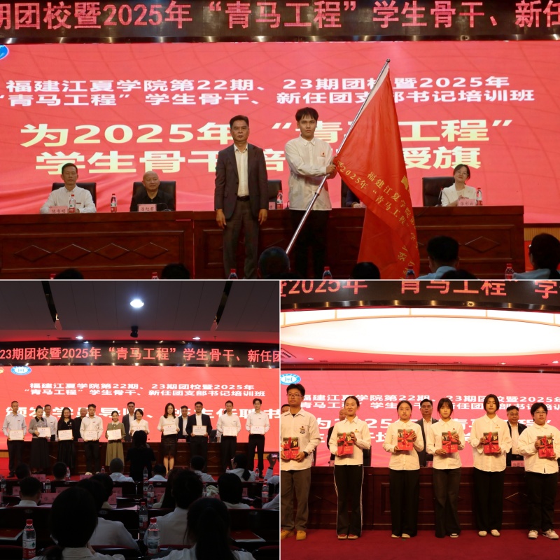 开班式上,王长勇向新一期“青马工程”大学生骨干培训班授旗。宣传部负责人宣读了学员导师、班主任名单。校团委负责人宣读了《关于授予福建江夏学院第20、21期团校暨“青马工程”学生骨干、新任团支部书记培训班学员结业证书并表彰“优秀学员”的决定》。现场为学员导师、班主任颁发聘书,并向学员代表赠送《习近平与大学生朋友们》(第一、二卷)。